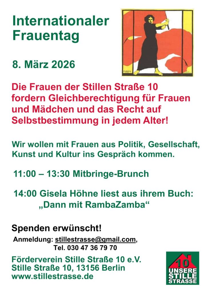 So 8. März 2026 11:00 bis 13:30 Mitmach-Brunch, 14:00 Lesung von Gisela Höhne