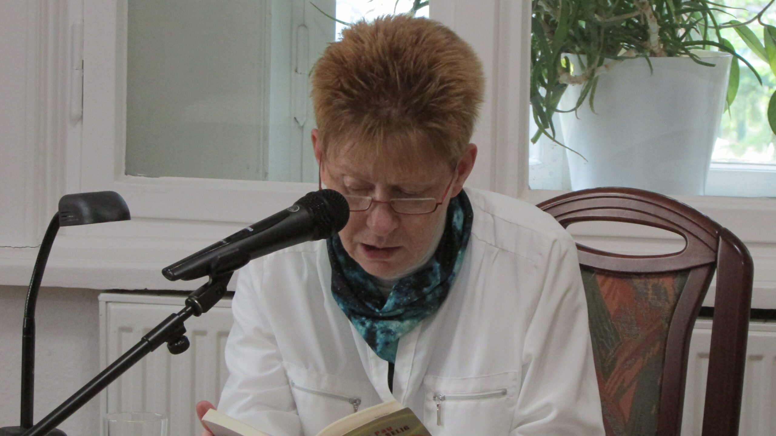Petra Pau, als Linke Politikerin, die 24 Jahre Bundestagsabgeordnete und die Dienstälteste Bundestags- Vizepräsidentin ist, las Anekdoten von „anomal bis digital“ aus ihren Büchern.