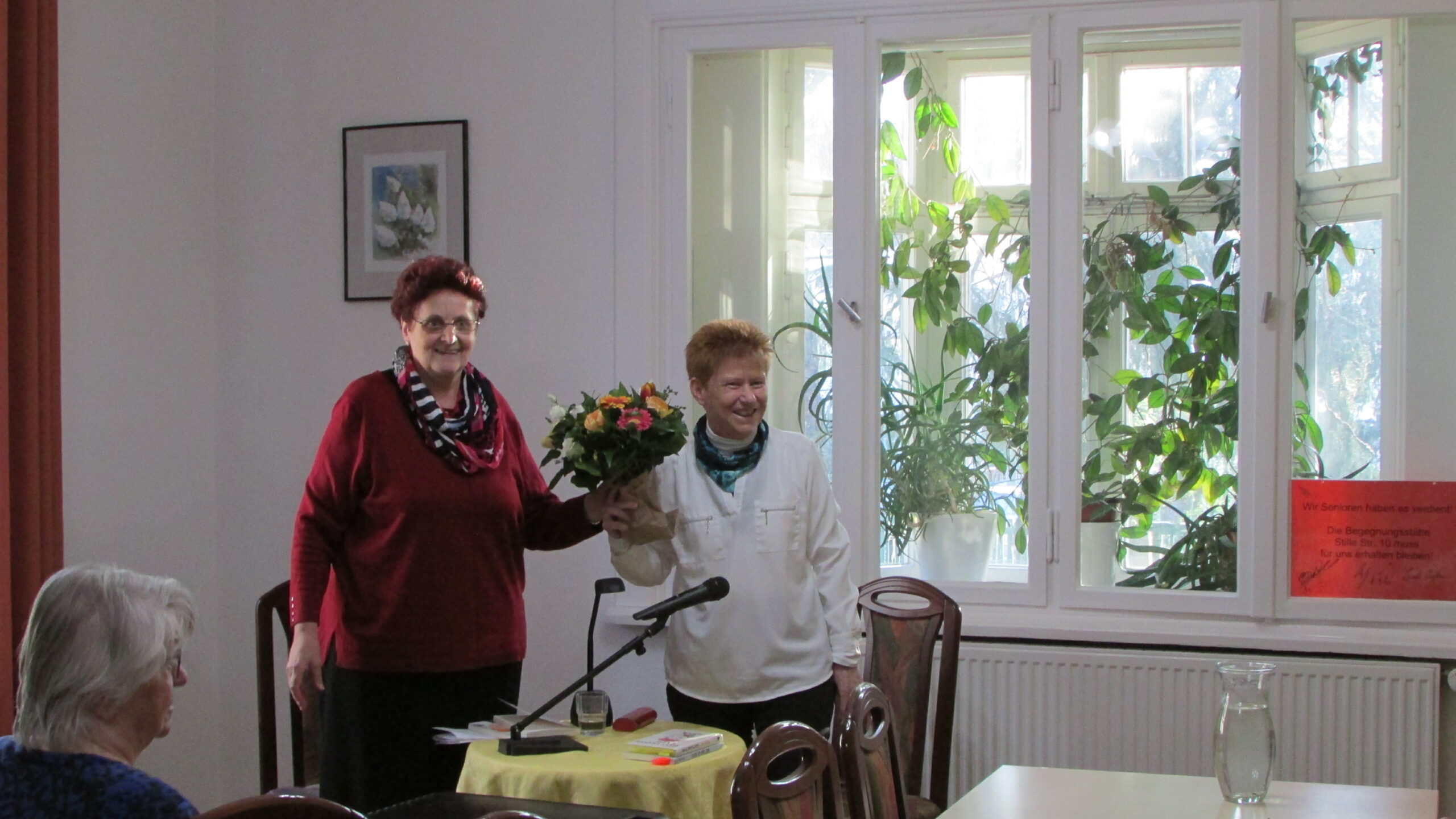 Anlässlich des „Tages des Ehrenamtes“ dankte der Vorstand des Fördervereins allen die die Begegnungsstätte nun schon 10 Jahre ehrenamtlich führen und die zahlreichen Veranstaltungen in der Festwoche organisiert hatten. Diese wurde finanziell vom Solidarfonds der Volkssolidarität, der GESOBAU-Stiftung und vom Haus der Kulturen der Welt gefördert.